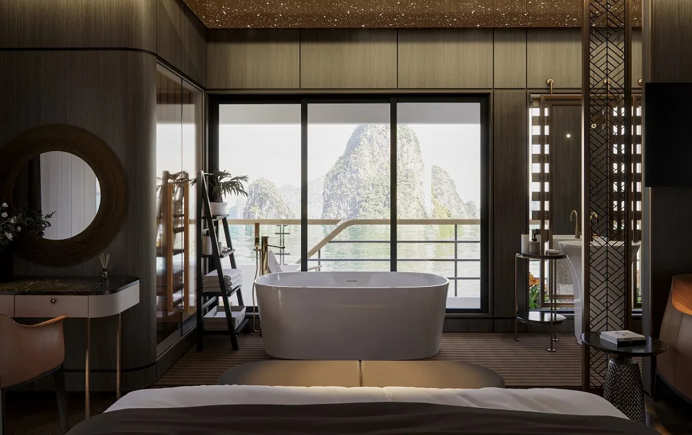 Welcome aboard Azura Cruise, the ultimate 6-star luxury cruise in Ha Long Bay and Lan Ha Bay — where tradition meets sophistication. Designed for travelers seeking an exclusive and refined cruising experience, Azura takes you beyond sightseeing to a world of personalized indulgence, eco-friendly innovation, and oceanfront serenity.