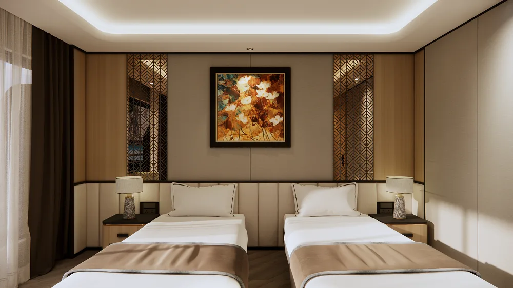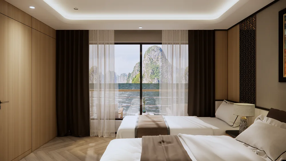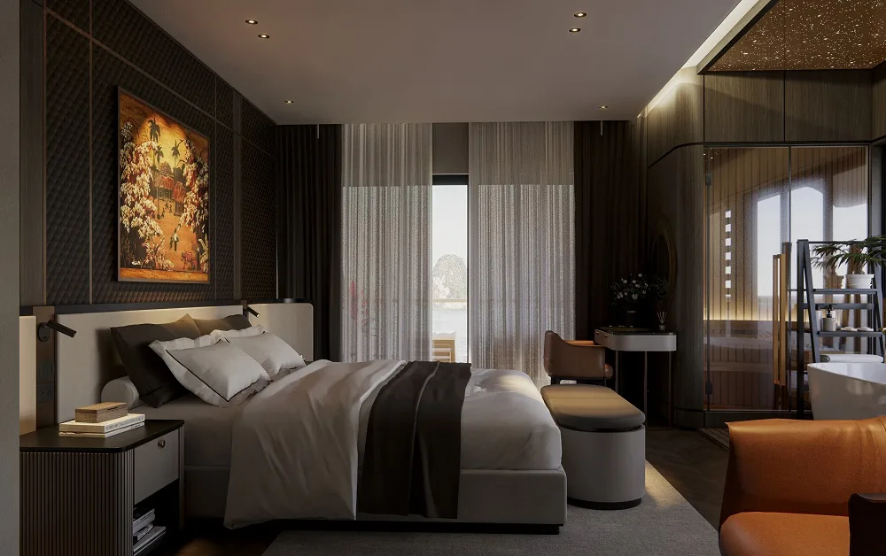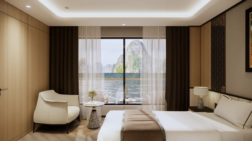 Every cabin aboard Azura Cruise features a private balcony, luxury bedding, modern amenities, and personalized service, ensuring total relaxation while sailing through Lan Ha Bay and Ha Long Bay. Whether you’re staying in a cozy Deluxe Balcony Cabin or the opulent Royal Azura Suite, each moment onboard is wrapped in comfort, privacy, and elegance.
