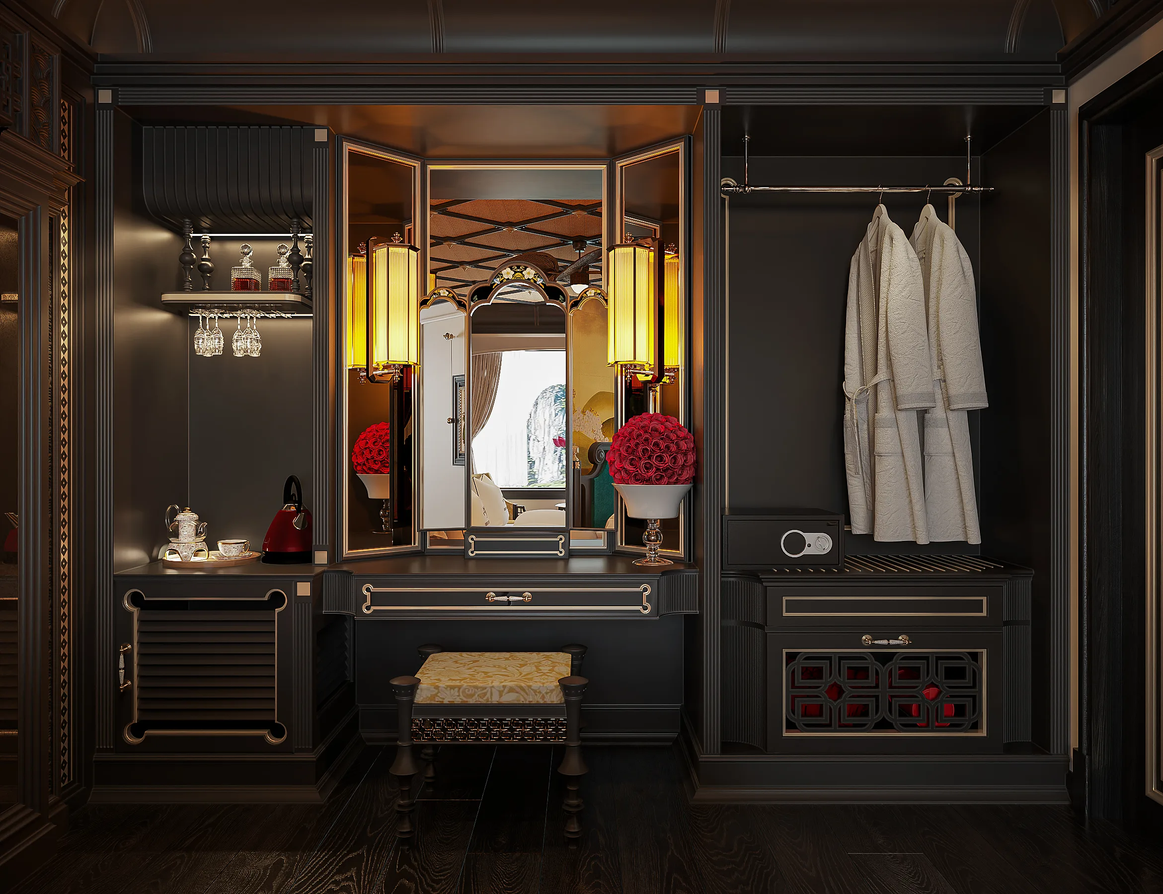 The suites seamlessly combine traditional Vietnamese artistry with modern sophistication. Handcrafted wood details, soft ambient lighting, and luxurious fabrics create an atmosphere of refined indulgence. Every space is carefully curated to reflect both cultural authenticity and world-class comfort.