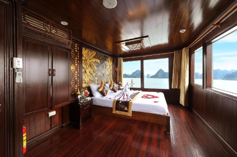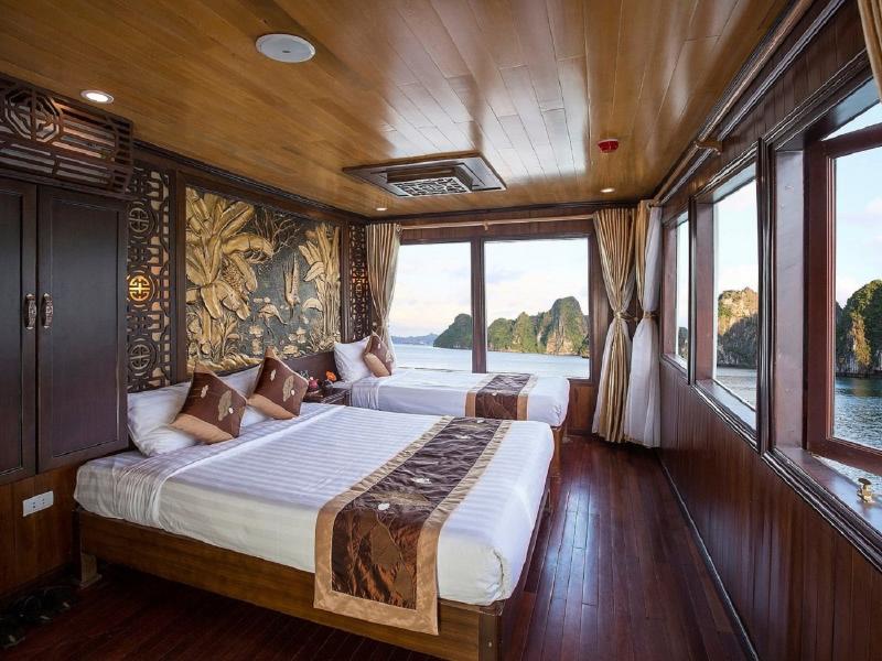 Step aboard a handcrafted wooden junk boat, designed in traditional Vietnamese style. The warm interiors, cozy cabins, and panoramic sundecks create an atmosphere that blends cultural heritage with modern comfort. Every detail reflects local craftsmanship, making your journey both stylish and soulful.